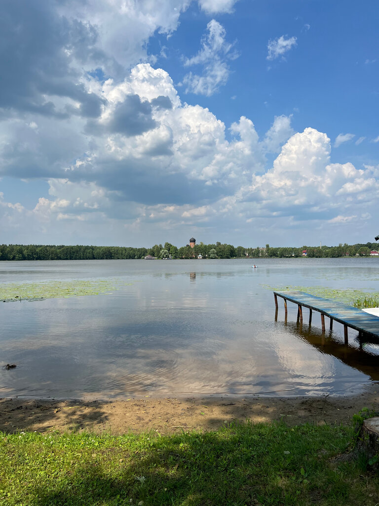 Небольшой чистый пляж с уточками , красивый вид . Слегка портят впечатление неумные люди , которые спускают сапы на воду и катаются между детьми у берега зачем то … мне кажется стоит отплывать на них по-дальше , выглядит по-дебильному до