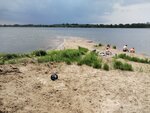 Пляж платный. 50 руб. с человека,300 с машины. Машины на территории пляжа стоят хаотично,никто не следит за этим. Песчаная зона достаточно широкая,вмещает много людей,но ощущение хаоса какое то. Кто то жарит шашлыки,рядом же на покрывалах лежат люди,бегают собаки,играют дети. Что кстати совсем не безопасно,и на берегу в песке и при заходе в воду встречаются битые стекла! Вода от берега мутная,с множеством водорослей и илистым дном под тонким слоем песке. Во многих местах нужно заходить и сразу плыть,иначе проваливаешься в ил. Для платного пляж очень неухоженный. В следующий раз поедем на бесплатную часть ,посмотрим как там.