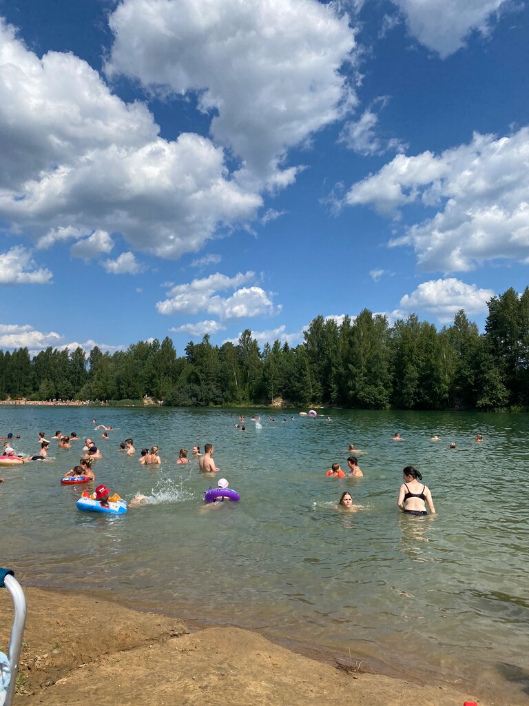 Отличное место для отдыха, в том числе и с детьми. Хороший песок, красивого цвета вода, рядом лес. На карьере есть несколько пляжей. Местами есть резкие обрывы в воде. Есть заходы с постепенным увеличением глубины. Место действительно очень живописное. Из минусов: не хватает мусорных баков или урн и туалетов, много людей вечером даже в будни. Вокруг карьера оставляют очень много мусора, портя тем самым весь вид. Мы ездили с детьми на электричке. Весь мусор забрали с собой. Многие же, даже на своём авто, почему-то не удосуживаются забрать с собой свой срач. Большая просьба к таким людям, забирайте своё добро с собой. Не загаживайте по истине красивые места!