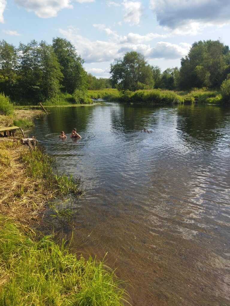 Зона отдыха сделана руками неравнодушных людей. Ступени, чтобы спуститься к реке, столики и топчаны из подручных средств. Можно устроиться на них или на траве. Сход в воду удобный, есть место где реку можно перейти в брод и есть где можно поплавать. Нам понравилось это место!