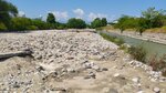 Пляжем назвать сложно. Река мелкая. Течение вдоль одного берега. Остальная часть русла - каменистое дно. Приятный момент для восприятия - искусственные пороги и частично разрушенный водопад