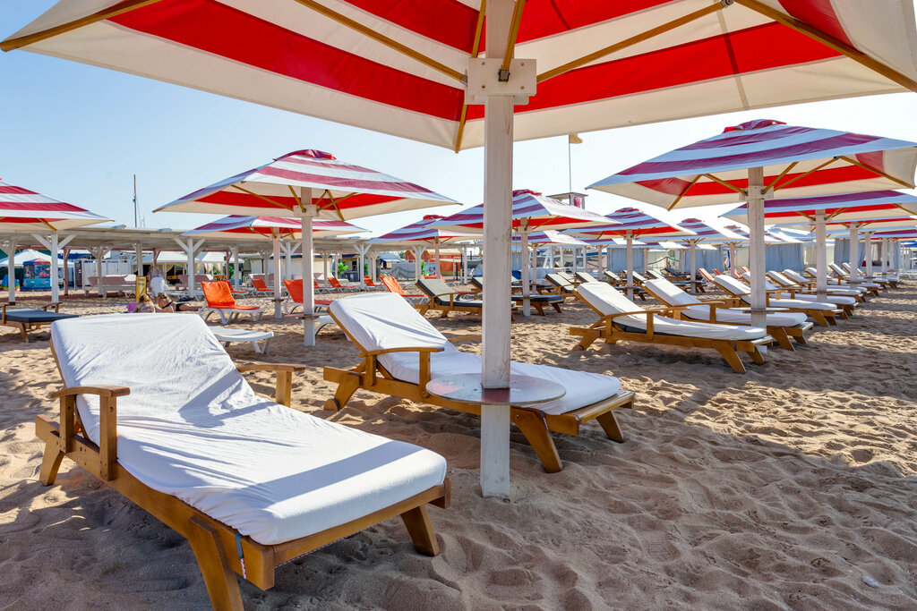 Очень понравился отдых на данном пляже! Просто идеальная чистота как песочка, так и лежаков.Можно взять на прокат надувные круги и т.д. Очень позитивный, внимательный и отзывчивый персонал! Вкусная еда, быстро приготовили вкусный картофель фри на больших ресторанных тарелках! Не надо было бегать узнавать готов заказ или нет, потому что объявили в микрофон! Приятная музыка играющая на данном пляже очень релаксирует и приятно расслабляет! Пальмы очень гармонируют и поднимают настроение. Есть бесплатный туалет, место принятия душа, раздевалки, большие зеркала где можно посмотреть на себя в полный рост и привести в порядок. Отличный бар! Рядом кафе где готовят самые свежие блюда у вас на глазах. Всё очень чисто и приятно глазу! Цена лежака с регулируемым навесом ( серого цвета)- 1500 руб, цена шатра 3 тыс. руб. Все наматрасники стелят свежими сразу как вы оплачиваете выбранное вами место для отдыха, это реально вдвойне приятно! Минусов нет! Всё супер! Буду всегда приезжать именно на этот пляж и рекомендовать своим друзьям и знакомым! Всем рекомендую! Получите реальное удовольствие!