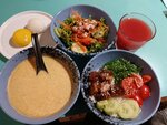 Зашла случайно и не пожалела. Очень приятный персонал, интересный интерьер, вкусная еда. Взяла поке с лососем и лимонад маракуйя. Оговорила отсутствие лука в блюде. Сделали очень вкусно. С большим удовольствием посетила это заведение! Рекомендую зайти! Жаль не успею попробовать другие блюда, меню очень интересное.