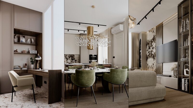 В 3D дизайн-проект входит: ▫ Полный комплект чертежей и разверток стен ▫ 3D визуализации каждого помещения ▫ Спецификация по материалам и освещению