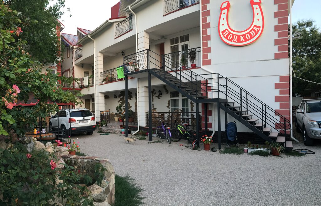 Нас "прокатили" в одной из гостиниц Коктебели, но "милостиво" порекомендовали обратиться в Подкову. В итоге с удовольствием провели 2 ночи в этой гостинице. Номера достаточно просторные, наша семья с 2 детьми и друзья с 1 ребенком без проблем поместились в 2 номерах. В номере была двуспальная кровать, раскладной диван для детей, санузел, холодильник, чайник. На окнах - москитные сетки. Во дворе удобные беседки и мангал. Есть парковка для машин за забором. Очень приятные хозяева.