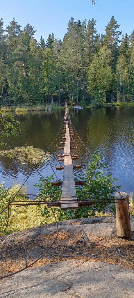 Супер место ! Природа кайф экотропа . Озеро клюквенное офигенный мост . Мечта сбылась . Когда дождливая погода опасно ходить на подвесном мостике , скользко