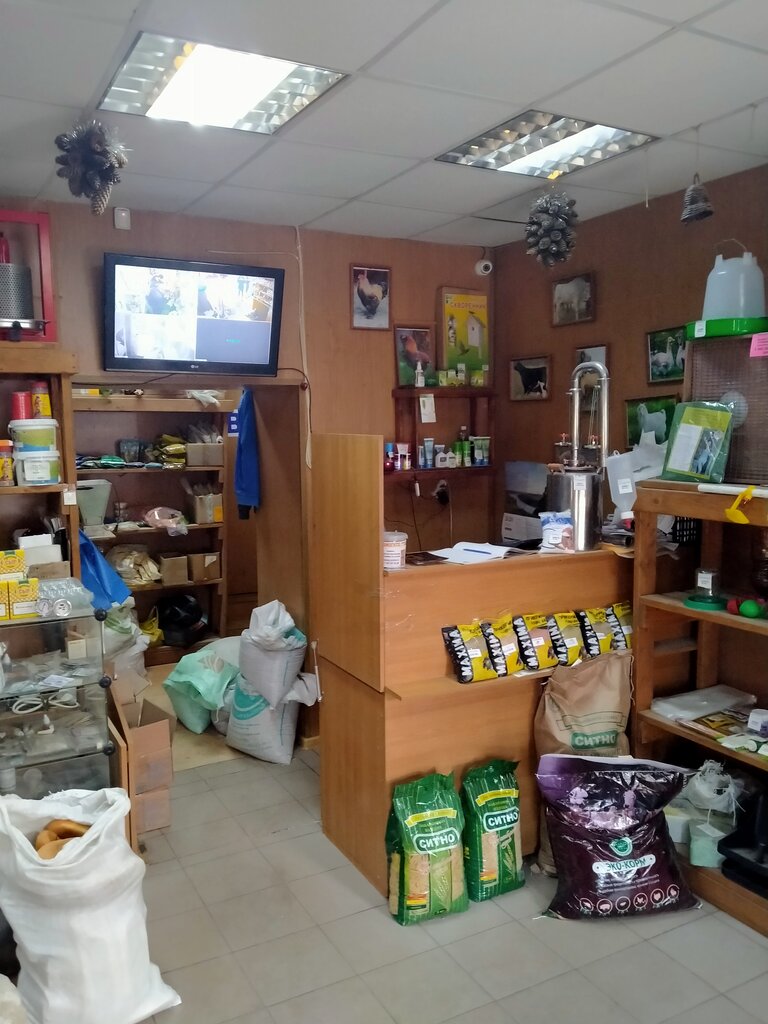 Магазинчик хоть и маленький но большой выбор...это и корма и прикормки и кормушки и поилки и всякие витаминки для животных и поводочки и даже садовые цветы...продавец всегда очень общительный всегда поможет с выбором подскажет если надо...цены не завышеные...всегда помогут загрузить мешки в машину...