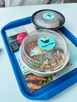 Решили перекусить здесь, тк во всей сети плюс-минус одинаковое качество еды -всегда хорошее. В этой точке тоже вкусно, хотя поке курочка по-корейски ну совсем не острый, хотя вроде 2/3 перчика нарисовано. Моти вкусный, но не особо похож на моти, но хорошая вариация. Минус только в том, что ждали достаточно долго и кассир уже очевидно забыла, что нас было двое, поэтому приборы положила только на одного)
