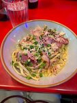 Посещала данный ресторан уже первый раз.Всегда вкусная интересная еда.Оформление зала нравится,единственное-тесновато,часто не бывает свободных мест.В этот визит заказывали том ям лапшу,лапшу с беконом и сыром,креветки и кальмары в кляре.Моей сестре,впервые посетившей это место,очень понравилось.Порции большие,оправдана стоимость.Мы не смогли доесть креветки,нам их любезно упаковали с собой,за что огромный плюс. На улице возле кафе так же красивое оформление,можно сделать красивые фотографии