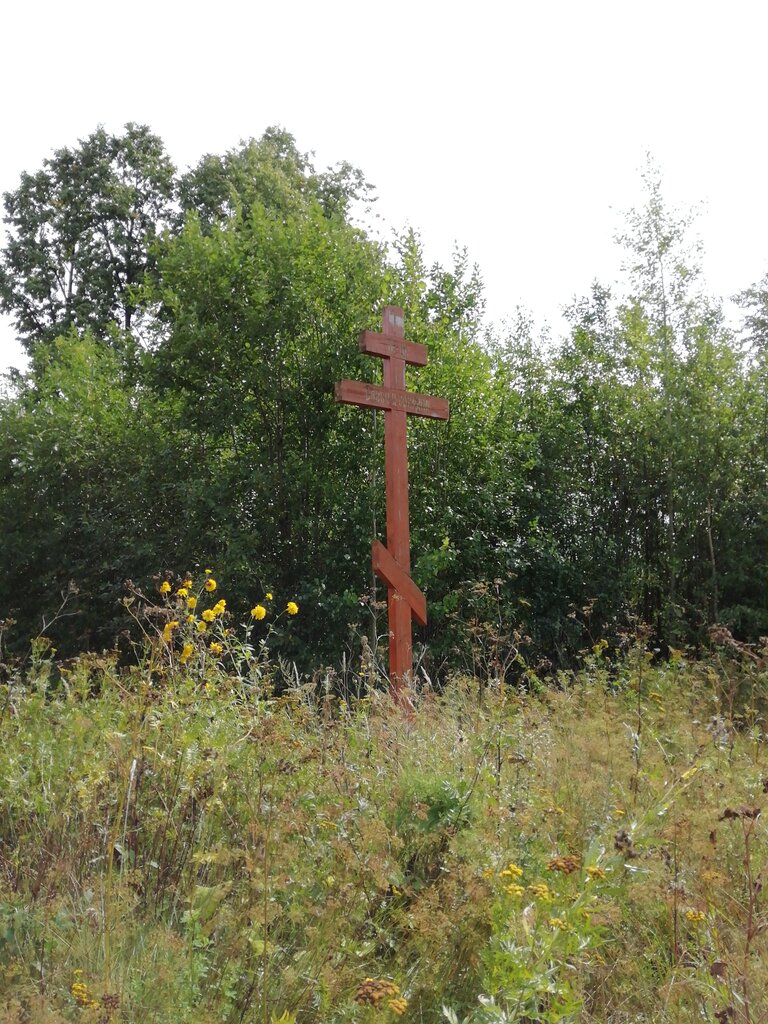 Крест установлен 9 октября 2009 г сотрудниками Церковно-приходской школы. Стоит на месте Храма. Жаль, что вокруг - трава с рост человеческий...