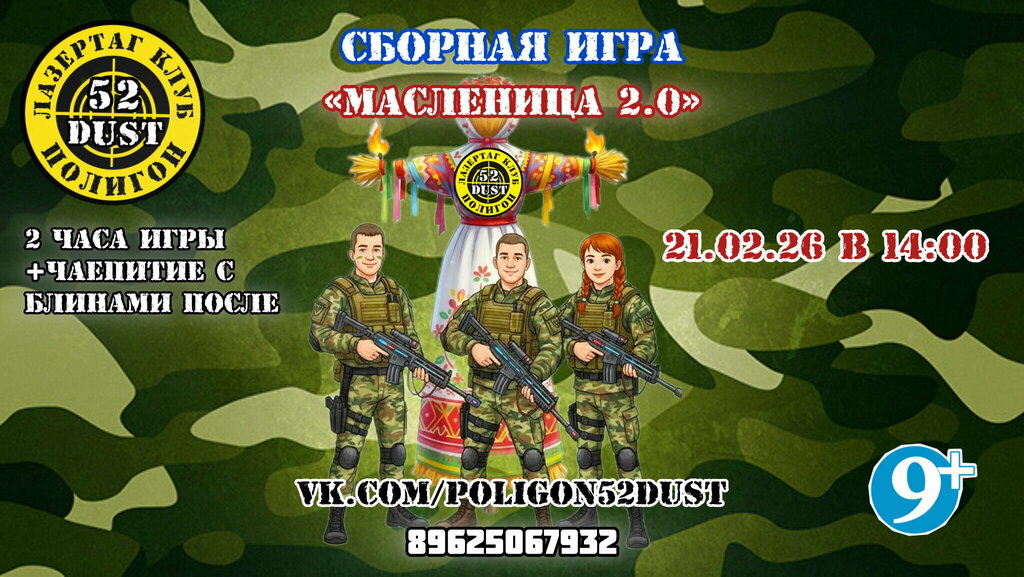 Акция в Лазертаг-клубе Полигон52 Dust в Дзержинске Сборные игры 29.03.2026! Школьные каникулы Друзья, Вы уже небось соскучились по сборным...