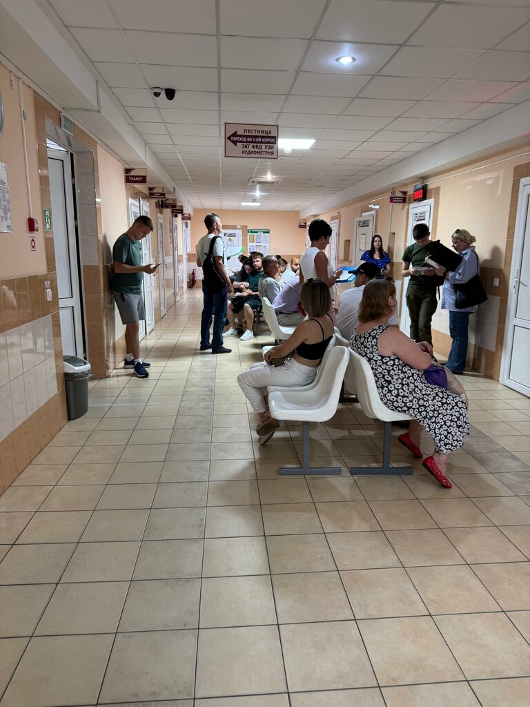 To complete the commission, you must make an appointment online in advance. I liked. After receiving the card at the reception and paying at the cash desk (immediately on the spot), coupons are taken to the necessary specialists. No live queue, everything is convenient and fast enough. Communication with doctors is only business-related, everyone is polite and correct. The ophthalmologist examines him very closely (which is good).