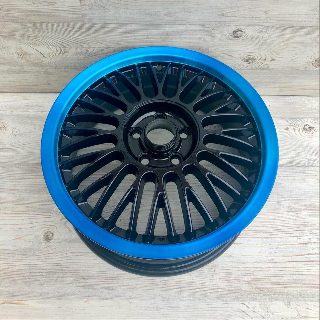 Покраска литых дисков R16 На светофоре оценят Цвет - черный глянец, алмазная проточка полки + покрытие голубым Candy Гарантия 2 года