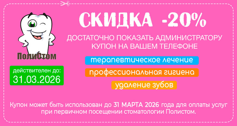 Если Вы ещё не лечились у нас, то на первое посещение скидка 20%