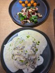 Небольшое приятное кафе с интересной историей. Шикарное блюдо мезе с сетом намазок. Очень вкусно! Хлеб горячий , намазки то что нужно. Лимонад с щавелем тоже отлично освежает, вкусный, без приторности, с легкой кислинкой. Равиоли с грибами и трюфельным соусом. Вкусно, но трюфель вообще не чувствуется, а он там был очень кстати. Порции большие. Обслуживание внимательное. Десерт - полное разочарование. Лесные грибы в карамели с кремом из белого шоколада. Все по отдельности : грибы, карамель, крем, мороженное и крошка бородинского хлеба. Все вместе какой-то непонятный по вкусовому сочетанию набор, с приторно сладким вкусом и безвкусными грибами.