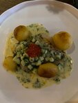 Небольшое заведение, но пользуется популярностью у местных. Все столики вечером в субботу были заняты или забронированы. Меню небольшое. Салатов, например, всего 4, да и то один сладкий. Цены не бюджетные. Но приготовлены блюда очень вкусно. Не очень понравился салат с тунцом - странный какой-то, совсем не салат. Просто лежат в тарелке пару картофелен, пару кусочков рыбы (мне показалось сыроватой), помидорка, пара колечек огурчика. Ну как-то не впечатлило.