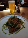 Были в этом ресторане впервые и второй раз бы туда не пошли .Заказали куриную грудку с балгуром и печеной тыквой, так вот блюдо принесли холодным и грудка была очень сухая.А вот стейк из говядины был вкусным и горячим ,как и должно быть.Официанты очень вежливые ,за это большой плюс.