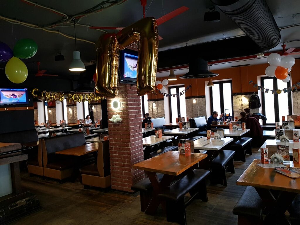 Столик бронировали заранее. Меню - 15 минут ожидания, пришлось идти за ним на барную стойку. Но заказ принесли быстро. Еда не для гурманов - сносная. Блондинка 45+ (официантка) - осторожно :)) , побывав в заведении, Вы все поймете. Рассчитывать на просто вежливое отношение не придется - но тут можно понять - контингент разный - недорогой вариант много пить, завалиться на соседний столик, громко ругать спутника или просто спать за столом)). Интерьер уставший. Если футбол и нужен не дорогой ценник - идеально - много экранов ТВ. Были мы там не больше часа. Закуски по цене более приличных пабов. Только пиво из бюджетного сегмента. Крепкий алкоголь не рекомендую - попробовали - отвратно