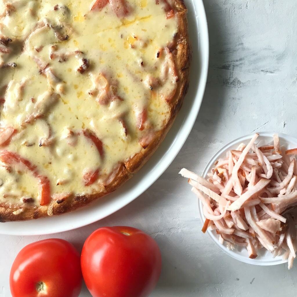 Ветчина, бекон, помидоры, сыр