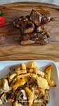 В целом все блюда понравились. Заказывал себе бургер, сыну - картошку фри. Звезду забрал за цены. Считаю что за такие цены - блюда должны быть вау. Далее по интерьеру: здание двух этажное, сидел на втором этаже. Ужасно тянет из кухни. По запаху можно было догадаться что заказали другие посетители. В самом заведение на столах чисто. А теперь вишенка на торт - повара готовят голыми руками…