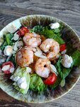 Куриная грудка на гриле, микс салата, томаты, соус из домашнего майонеза, гренки