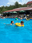 Бассейн хороший, сосны кругом, воздух чистый, но пускают слишком много народу, больше чем могут разместить, в бассейне как кильки в банке. Кафе не готовятся к выходным, пива разливного нет, баночное пиво тёплое, лёд в ограниченном количестве, чая в чайниках заварного нет, только чашка и пакетик, так и вода еле тёплая, не кипяток. Нам то казахам нужен горячий чайник чая.....