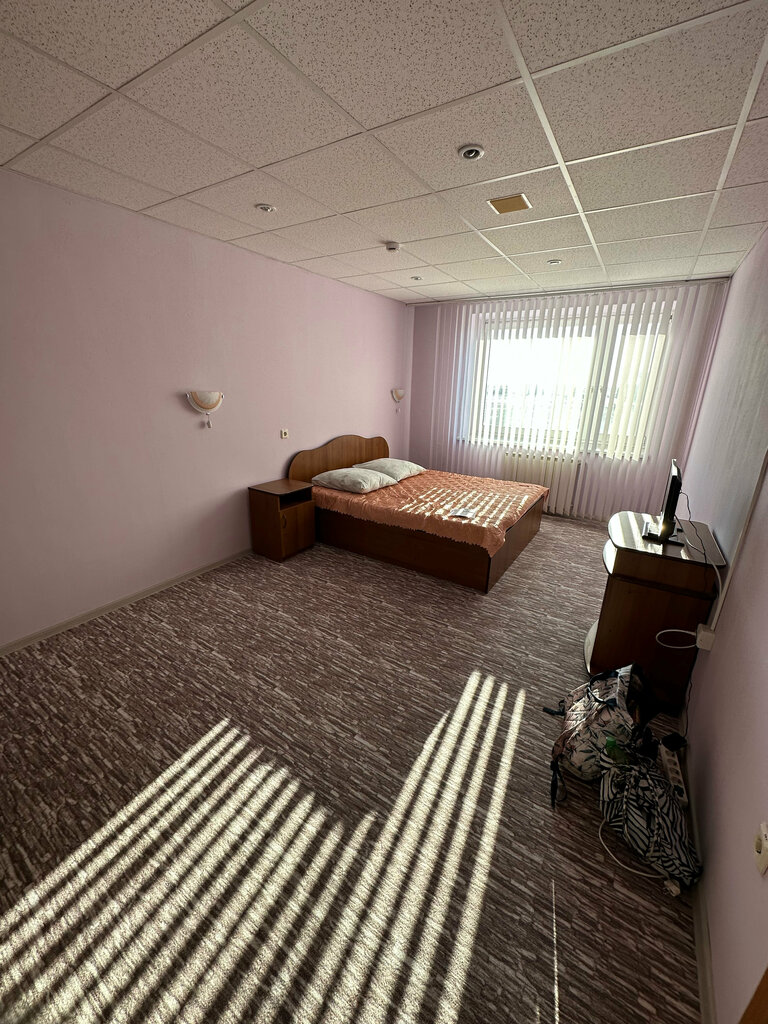 Из-за метели и перекрытия дорог, пришлось заранее ( почти за сутки) приехать в аэропорт. Поэтому были вынуждены остановиться с мужем и 6 месячным ребёнком в этой гостинице. Почитала отзывы и была готова к худшему, но на деле все оказалось иначе. Номер чистый и просторный, двухкомнатный (спальня+ обеденная зона), со своей душевой и туалетом, в сутки обошёлся в 2500₽. Из минусов - в номере прохладно, поддувало из окна. Но для нас это оказалось больше плюсом, тк младенец спал в этой прохладе просто прекрасно и + нам дали обогреватель. Учитывая какой аэропорт в Орске, гостиница при нем просто замечательная. Только покушать негде( Точнее можно поесть только в аэропорту в столовой, но работает она до 17:00. Теперь пожелания к начальнику гостиницы. Вы выдаёте воду, но чая и кофе у вас нет. Положите, пожалуйста, в номера по паре пакетиков чая. Будет очень приятно постояльцам. Тк магазина рядом нет и купить чай негде. Было бы здорово, если бы у администратор на респешен можно было бы купить что-то из еды (лапшу быстрого приготовления или пюрешку, рулет к чаю, сахар, молоко или какие-то йогурты, в общем чем можно перебить аппетит. И вам доход будет и нам будет приятно и хорошо. Спасибо вам за сервис и за старания сделать наш отдых комфортным.