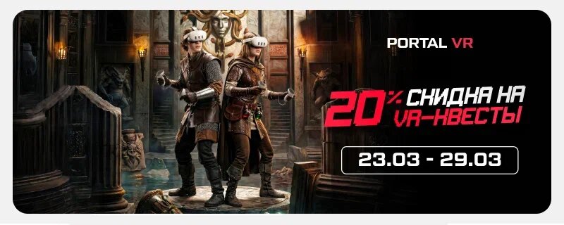 🔥 Неделя Квестов в виртуальной реальности! С 23 по 29 марта скидка 20% на всю подборку квестов Испытайте страх высоты, сразитесь с медузой...