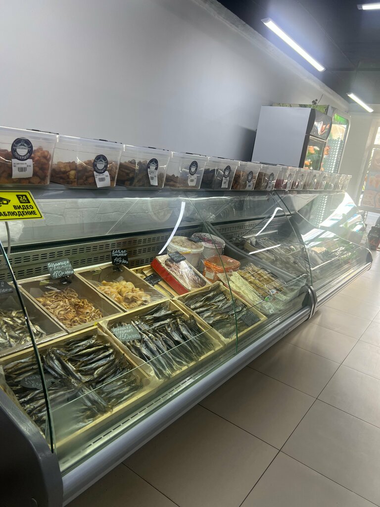 Небольшие, но очень уютный магазин с большим ассортиментом морепродуктов, пива и лёгких закусок к нему. Обходительный и отзывчивый продавец (он же хозяин) Артур, ему отдельное спасибо!