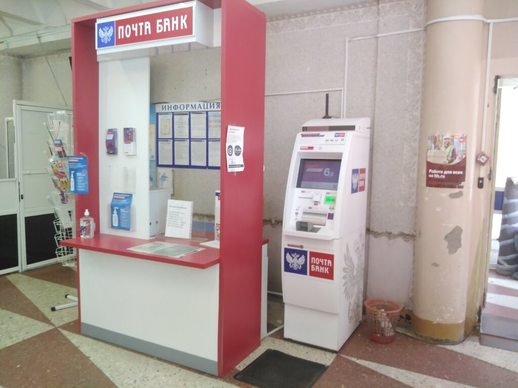 ,,Киоск,, ПочтаБанка втиснуть в тесное, не приспособленное помещение почты. В котором жуткие очереди и скученность. Не встать, ни сесть. Банковскую тайну, конфиденциальность, приватность - никто и не собирался обеспечивать Персонал - две девушки, которые каждые 5 мин.бегают курить! Персонал не обучен, с трудом печатает на клавиатуре! Персонал вынужден всё рабочее время находиться в верхней одежде! В зимнее время в помещении почты холодно около входных дверей, не оборудованных тепловой завесой. Условия труда - адские! Нарушены все нормы и правила!! Нарушены нормы обустройства банковских помещений. Всё не приспособлено! Мучаются клиенты! Мучаются работники! Расположено отделение ПочтаБанка очень удобно. Подъезд на автомобиле и стоянка вполне возможны. Но, помещение отделения находится в средневековье!