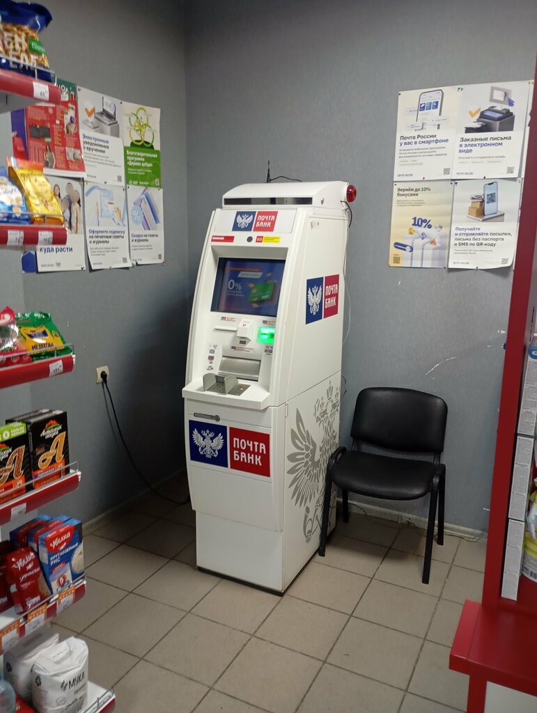 Отделение почты периодически посещаю. Зачем туда еще банк пришпандорили, не понимаю. Эта организация с несчастными посылками справляется еле-еле и долго-долго, а тут еще и банк. Их спасает то, что в этом банке нет ни кого, ни клиентов, ни персонала, только тумбочка и вывеска🤷