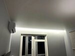 Понравился подход к работе и результат. Приехали на замер, обговорили все детали, предложили подсветку карнизов, в итоге очень понравилось как она выглядит. В назначенную дату приехали, в двухкомнатной квартире всё сделали за рабочий день и учли все пожелания
