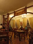 Удалось побывать в этом кафе, давно хотели!!! Попали в порядке живой очереди ( столик ждали минут 30). Находиться в очень интересном месте, в старинном здании гостиного двора. Интерьер интересный, антуражно, но места не много, особо не пофотографируешь. Официанты молодцы, работают быстро, слажено. Из еды брали борщ и солянку, пельмени в шапке, вареники с капустой и закусочную тарелку. Едой немного разочаровались, ожидали большего. Пельмени под шапкой из сыра и сметаны просто плавали в этой шапке. Вареники с капустой оказались сильно тушёной капустой с томатной пастой. В общем наверно на любителя. Солянка понравилась, она необычная, с грибами. Вообще в меню русская, сибирская кухня- это радует.