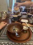 Лучшее кафе!!!Интересная подача блюд!Цены отличные для такого антуража,сервиса и качества блюд!Сервис - выше всех похвал.Отдельный респект официанту ,имени не помню,он вернул оставленный телефон. Молодой человек,дай Бог вам здоровья и счастья!!!Очень уютно,чисто колоритно.Спасибо хозяину кафе,что так заботитесь о туристах, об уюте и настроении .Всё блюда были очень вкусными,завтраки просто чудесные!!!