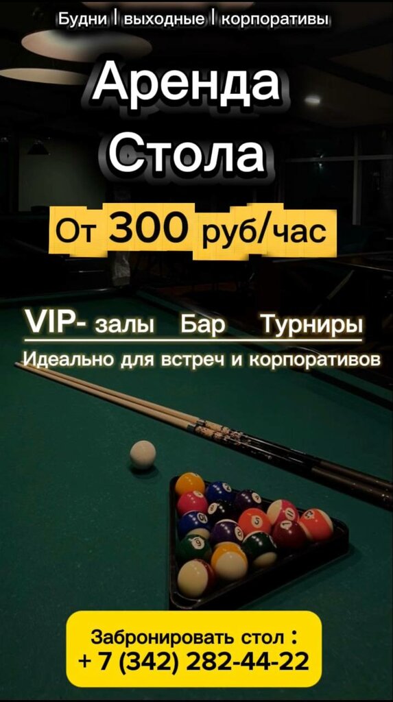 Пул ( американка) с 00:00 до 02:00