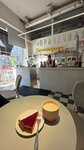 Инстаграмное кафе. Вкусный кофе и пирог. Маленькие столики на 2х человек. Утром много народу приходит.