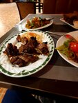 Обслуживание отличное. Салаты в целом неплохие. Кавказский шашлык из баранины ужасен, мясо жесткое: даже ножом куски не режутся, очень много жил и костей, к тому же ещё и обгоревший.