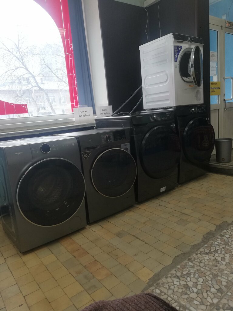 Я думала, что вывеска осталась от прежнего магазина. Но нет, это не прачечная, это несколько бытовых стиральных машин в грязном, темном и вонючем магазине. Даже находиться там неприятно. Ждать, пока стирка закончится и глядеть на это великолепие, дышать непойми чем? Или оставить свои вещи на произвол судьбы и уйти? Даже не знаю, что выбрать, поэтому просто ушла.