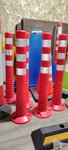 Колесоотбойник выполнен из твердой синтетической резины черного цвета. На нем расположены три желтых светоотражателей для хорошей видимости отбойника в свете фар в условиях низкой освещенности в паркинге.