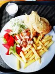 Всё очень вкусное и свежее, брали шашлык из свинины, гирос на тарелке, заведение новое, не зря остановились, рекомендую