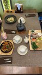 Попали в обеденное время. Когда пришли , была практически полная посадка, но нашёлся свободный столик. Официанты не успевали обслуживать, поэтому меню пришлось взять самим. Что касается самого меню - оно достаточно большое, ценник довольно низкий. Пришлось долго ждать пока примут заказ. Еду приносили довольно оперативно. Все было очень вкусно. Порции большие. Суп-лапша с курицей очень понравился. На 1500 объелись, до конца дня есть совсем 6е хотелось. Когда уходили, уже половина столиков были свободны, поэтому не буду снижать оценку из-за долгого ожидания официантов, видимо, мы попали во время бизнес-ланчей и работники соседних офисов пришли обедать. Даже жаль, что не удалось второй раз посетить данное заведение