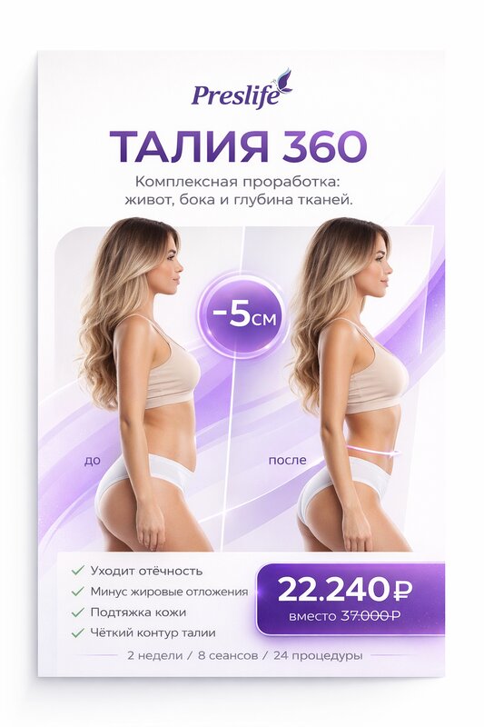 1. Консультация специалиста 2. Турбомассаж по профессиональному крему Preslife локально 3. Профессиональная детокс-терапия 4. Персональная программа коррекции фигуры 5. Одноразовое белье Стоимость: 1500 руб., вместо 2700 руб. Продолжительность...