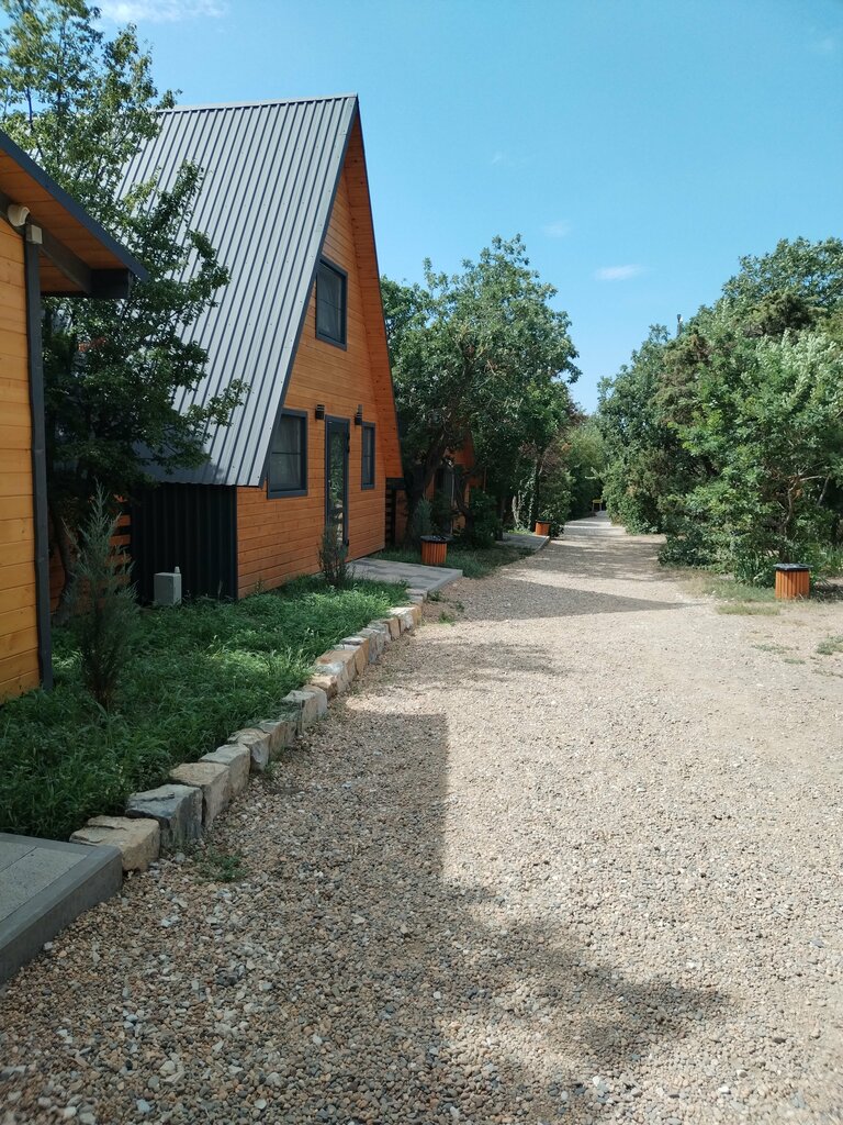 Отличное место. Тихо, спокойно, большая зеленая территория, детские площадки с батутами и настольный теннис. Домики и номера на любой вкус и кошелек. Есть вип-зона со своим бассейном, открытой кухней и мангалами. Галечный пляж с лежаками под навесом, чистое море. Вкусная домашняя еда в столовой за приемлемые деньги. Большие порции. Небольшие минусы - нет общей посуды на кухне, нужно брать все с собой, если хотите готовить сами, ну и лестница на пляж довольно крутая, но на ней оборудованы лавочки - можно отдохнуть по пути. В целом, хорошее место для отдыха. На территории бар с приемлемыми ценами - пиво 150-200₽, вода 120₽, кукуруза 100₽, мороженое от 50₽. Можно с собачками.