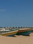 Была в июне 2025. Я, конечно, читала, что море грязное. Но не думала, что настолько. Настолько, что купаться я не стала, хотя очень хотелось. Пляж не оборудован туалетами и раздевалками, есть только платные шезлонги и зонтики. Соответственно, никаких спасателей и буйков там тоже нет. Пляж не чистят, вывозя мусор и водоросли. Очистных сооружений в городе нет, все стекает в море. Кстати, рядом с пляжем (в 200 метрах) как раз протекает слив канализации в виде речки-вонючки. Запах соответствующий. На пляже расставлены таблички "Купаться запрещено!". А издалека все красиво выглядит...