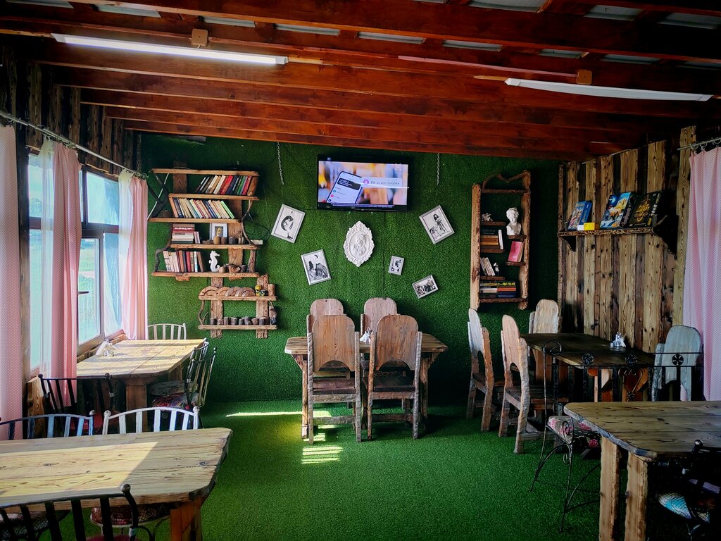 Кафе у озера, простое и дешевое. Несколько позиций меню, включая салаты и горячее. Небольшой ассортимент напитков. Из десерта есть мороженое и различные снеки. Приятная обстановка, интересный интерьер. Персонал вежливый.