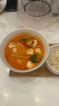 Кокосовое молоко, креветки, гребешки, мидии, кальмар, имбирь, лемонграсс, лимон, листья лайма, чеснок, чили, шампиньоны, бульон на выбор: куриный или овощной