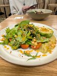 Сначала смущает, что кафе на входе в фитнес и немного столов. Но пусть это вас не пугает. Еда волшебная и для питера недорогая. Я заказала салат с хумусом и манговым соусом, порция огромная, а вкус потрясающий! Прекрасные домашние овсяные печеньки к чаю, обчзательно попробуйте!