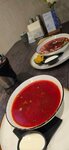 Отличный борщ. А так же приятно были удивлены холодным борщем, не обычно и крайне вкусно на лето. Совершенно не очевидное место для посиделок, которое находится на территории фитнес клуба , но еда действительно вкусная. Классный чизкейк
