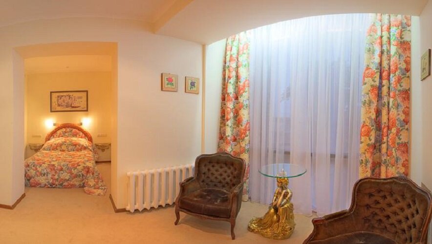 В районе частных домов отличный отель. Есть своя небольшая территория с прудом. При гостинице есть банкетный зал, и если вы едете выспаться то уточняйте про банкеты, ибо будете танцевать вместе с тусовщиками прямо на кровати. К 23-24 часам угомоняться все равно ))) Отличные номера со всем необходимым. Очень чистая ванная комната с отличным напором в душе. Халат, тапочки, банные принадлежности, фен, все что нужно есть. Отличный матрас, чтобы выспаться в путешествии. Ресторан при отеле все былоооооо очень вкусно и на ужине и на завтраке (очень сытно). Выше всяких похвал медальон из говядины.