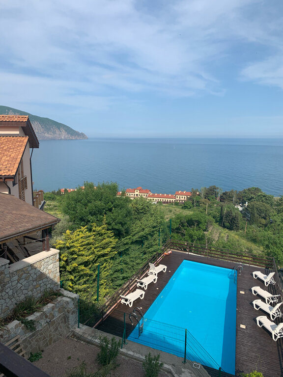 Останавливались на три дня в сентябре. Расположен вдали от центра, в тихом месте. До ближайшего пляжа 10 минут, до основного центра - 20-25, но обратный путь , особенно последние 150 метров, ну очень крутой подьем , это нужно учитывать. Есть электромобильчики, но из трех дней удалось им воспользоваться один раз. Номер вполне добротный с шикарным балконом -терассой с видом на визитную карточку Гурзуфа, бассейн и стоянку для автомобилей. Кстати стоянка для автомобилей здесь ооооочень большая редкость и это стало для нас решающим фактором при выборе. Завтраки - каши - ежедневно, чередуются - омлеты, йогурт, бутерброды, круасан. На кухне можно было воспользоваться большим холодильником и микроволновкой. Надо понимать, что это гостевой дом, а не отель. Персонал очень приветливый и отзывчивый. Нам повезло - были очень тихие соседи и удалось насладиться тишиной и покоем, но так бывает не всегда, потому что звукоизоляции нет ни в коридор ни в соседние номера. Ранее прочитанные отзывы позволили взвесить все за и против и неожиданностей при проживании не было